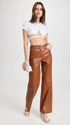- Fabric: Mid-weight, stretch faux leather