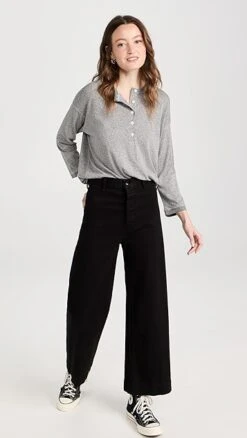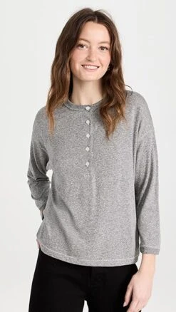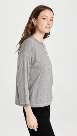 A soft and slightly shrunken THE GREAT. henley for your basics rotation. Dropped shoulder seams accentuate the slouchy fit of this piece.