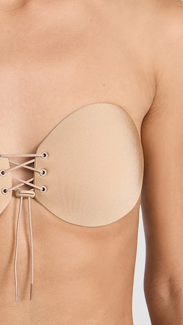 A strapless The Natural bra with self-adhesive backing. A lace-up drawstring cinches in front for a push-up effect.