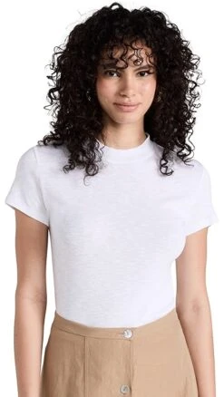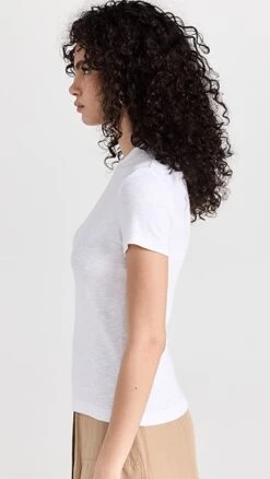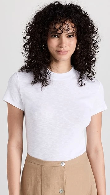 A low-key warm-weather basic you’ll want to stock up on. This slim Vince tee is crafted from tissue-weight slubbed jersey for an airy feel, and features cap sleeves that help create a more polished silhouette.