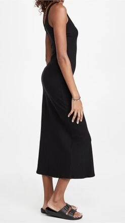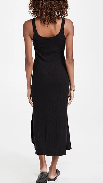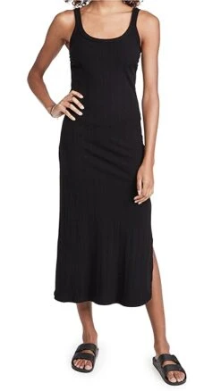With its slim cut and jet-black, lightly ribbed fabric, this Vitamin A cover-up dress will take your vacay look in a sleek and subtle direction. Keep things toned down with 2-band slide sandals, or take the opportunity to show off something a little bit brighter and more fun.