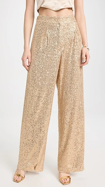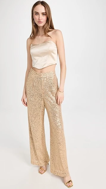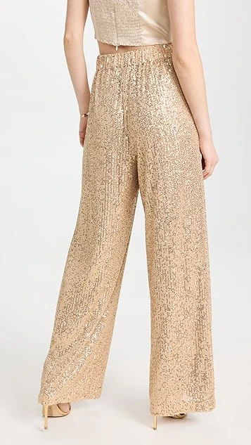 Make any look special-occasion-worthy with these WAYF Encore wide leg pants. Designed with a high-rise fit, this pair is guaranteed to draw the eye with allover, champagne-tinted sequins. To complete your outfit, add a silky crop top and heeled sandals.