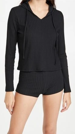 Fresh from the specialists in knitwear basics at Yummie, these sleep shorts are crafted from lightweight ribbed fabric and coordinate perfectly with the label’s super-comfy hoodie.