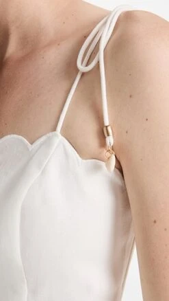 A pretty sunny-day option, this white Zimmermann top updates a classic peplum silhouette with tidy scallops at the edges. Wispy shoulder straps with shell accents trace the shoulders.